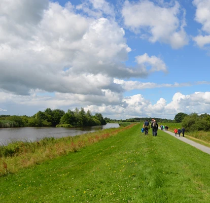 Die 3. Etappe beginnt in Apen. Apen liegt in der Parklandschaft Ammerland und grenzt an das ostfriesische Fehngebiet. Seine historische Bedeutung verdankt es den vielen Wasserläufen, die es über Jümme, Leda und Ems mit der Nordsee verbinden. Aufgrund ihrer Tideabhängigkeit gibt es hier eine wunderbare Auenlandschaft und das einzige Süßwasserwatt im Norden "das Aper Tief". Sie lassen Apen hinter sich und wandern mitten im schönen grünen Binnenland, umgeben von Feldern und Wiesen. Auf der Wanderung können Sie die grünen Abschnitte in Ruhe genießen. Sie kommen am Kulturdenkmal dem Mansinger Burgplatz vorbei. 1226 wurde der Burgplatz mit den Vorburganlagen und den umgebenden Burggräben erstmals erwähnt. Den Einheimischen ist das Burggelände als Hammjeborg bekannt. Heute sind ein größerer und mehrere kleinere Hügel in einer reizvollen Moorlandschaft zu sehen. Anschließend erreichen Sie Westerstede. Sie wandern bis zum Marktplatz und beenden "Am Markt" die 3. Etappe. Das beschauliche Stadtzentrum mit Fußgängerzone lädt zum Bummeln ein und zum Einkhren stehen viele gastfreundliche Cafés und Restaurants zur Verfügung.