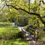 Am Hotel Sonnenhof geht es über die Langebrügger Straße und zunächst durch das Dorf Hüllstede. Danach streift der Weg ein Gewerbegebiet, aber dennoch ist die Natur mit dem Lauf des Hüllsteder Wasserzugs immer sehr nah. Bevor man die offene Fläche des Linsweger Esches betritt, geht es am Privatgarten der Familie Ohliger vorbei, der nach vorheriger Absprache (04488 71935) und an den Tagen des offenen Gartens besucht werden kann. Ein Aussichtsturm bietet hier einen Blick auf den Esch und auf die Imkerei im Garten. Weiter geht es auf dem Linsweger Esch mit einem weiten Blick über die Landschaft. Später taucht man im Garnholter Busch in einen lichten Wald ein, in dem das Rauschen des Baches deutlich zu hören ist. Hier lässt sich erahnen, dass die Landschaft durch die Eiszeit geprägt wurde. Danach führt der Weg durch ein Baumschulgelände, bis es schließlich über eine traditionelle Klinkerstraße mit Baumallee zurück zum Hotel Sonnenhof geht. Von dort aus führt der Weg zum Parkplatz am Kreishaus zurück.